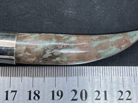 The tusk measures approx 64mm in length including the capping but without the ring. Nundorite is a unique rock found in the district of Broken Hill made up of aegirine and feldspar. Nundorite is a rock not a mineral. Nundorite…