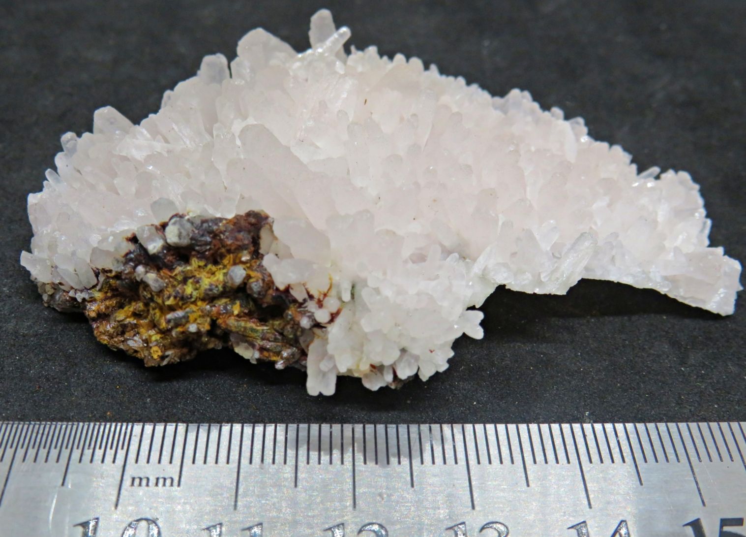 A Good covering of elongated calcite crystals that are fluorescent under UV light. Specimen measures approx 70x60mm. Price $30.00. See Mindat for more on Broken Hill minerals. Remember to check out our other items for sale.