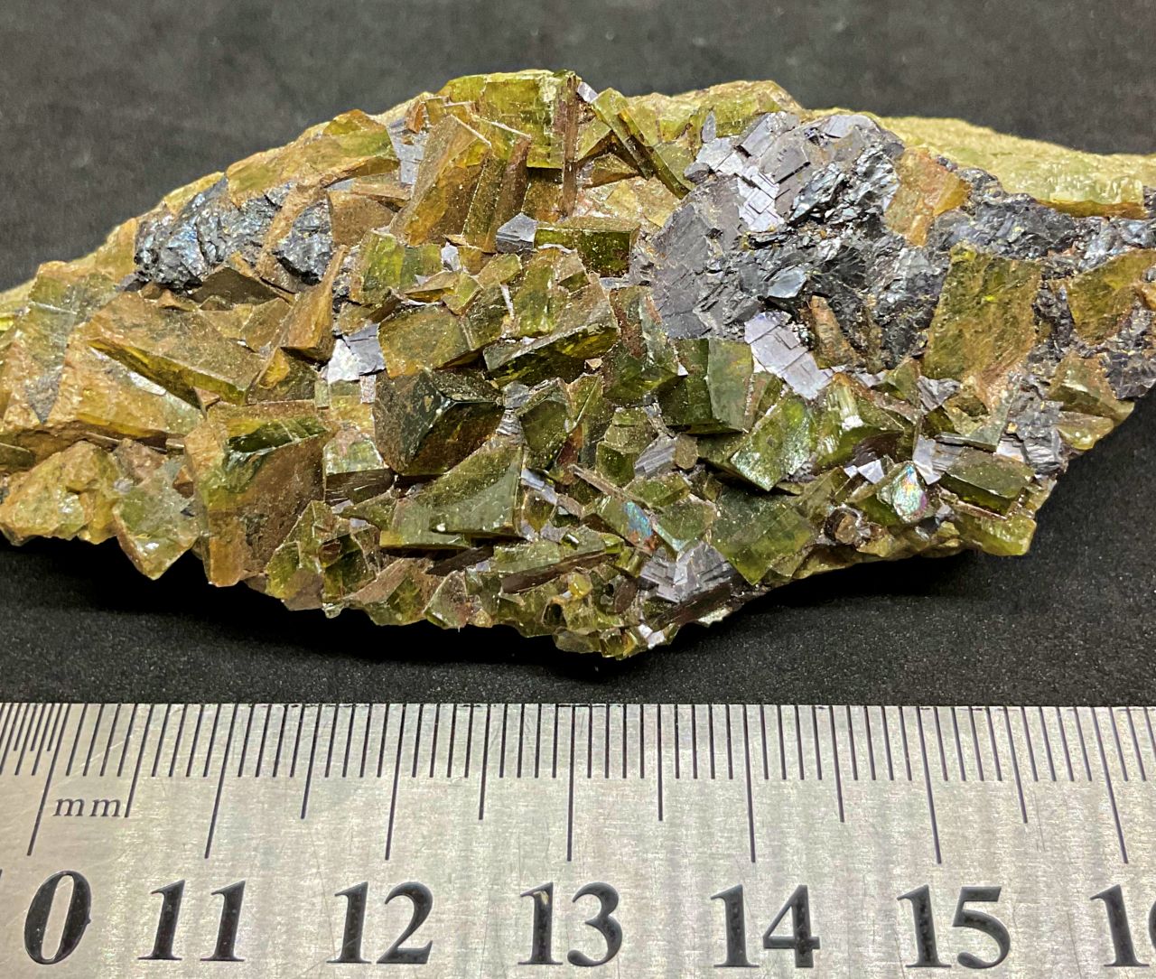 SOLD Hedenbergite crystals with cleaved Galena (stock code F8E2302)