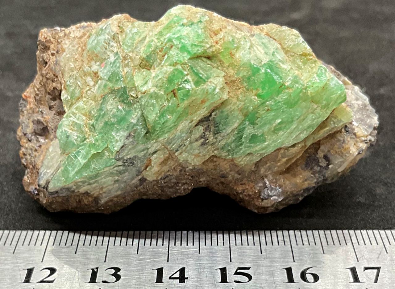 The green feldspar from Broken Hill is very uncommon in the world and a sought after specimen. This particular specimen has some garnet sandstone and mica attached. It is a beautiful representation. Specimen measures approx 120x80mm. Price $120.00. See Mindat…