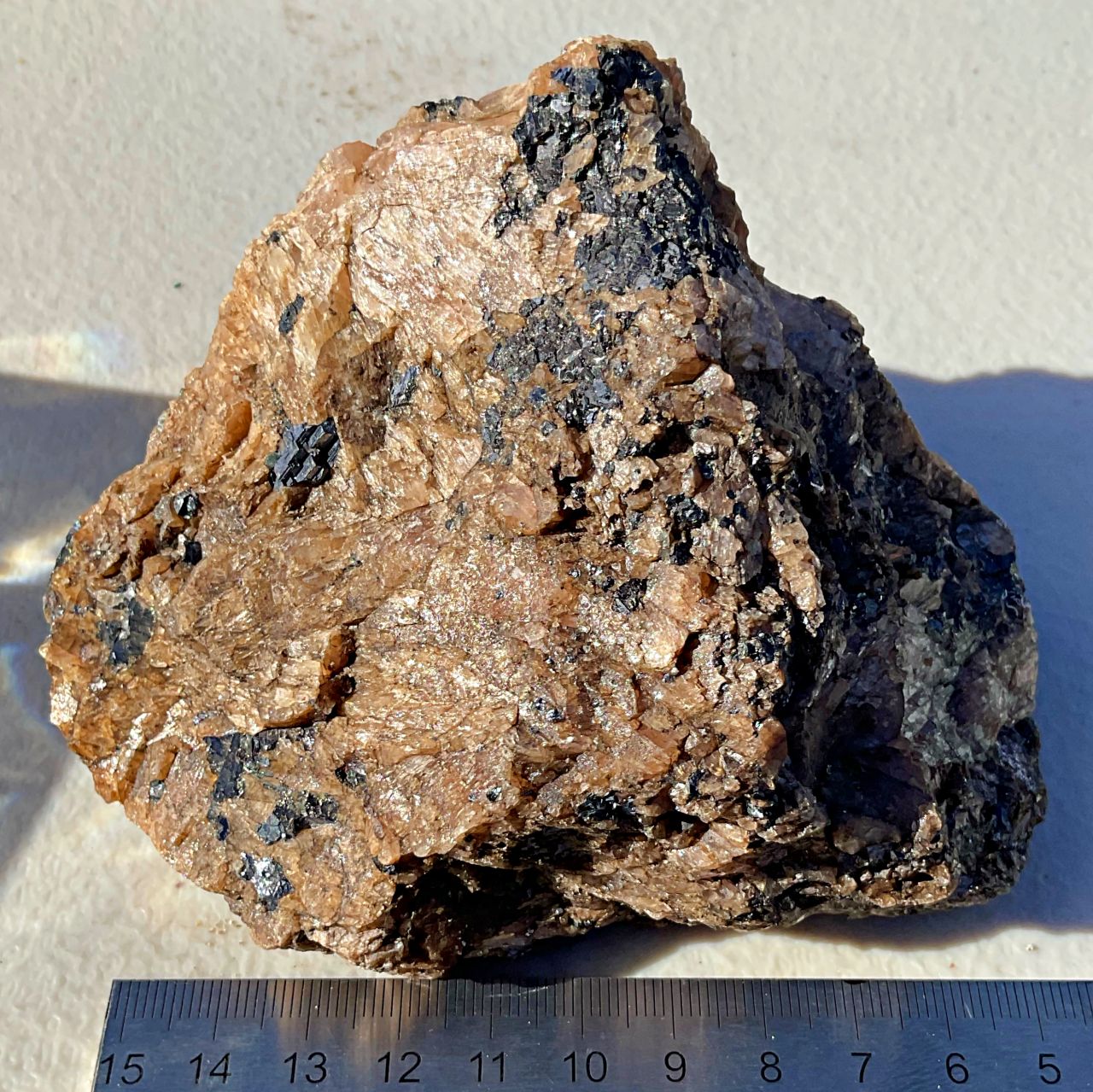 Bustamite crystal in calcite with galena. Good size single bustamite crystal approximately 60mm in length in massive calcite, with more bustamite in calcite surrounding the main crystal. Specimen stands on its own and measures approximately 120x60mm. Price $195.00. See Mindat…