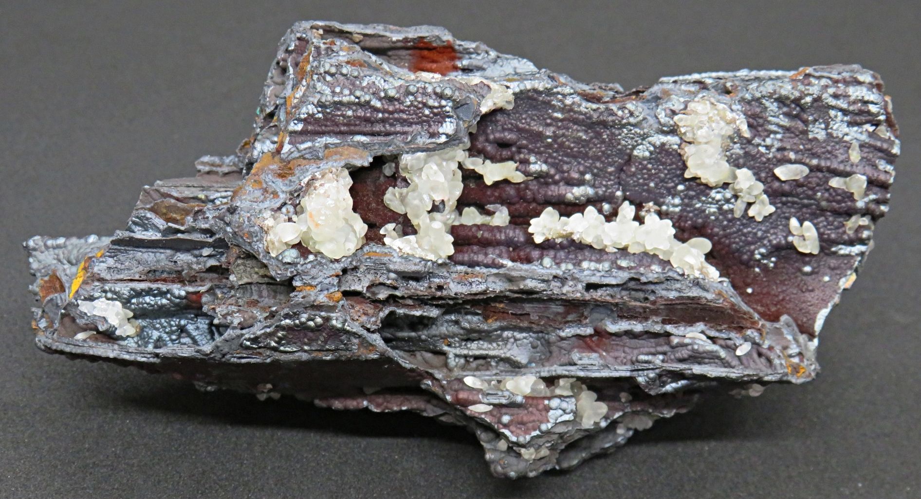 Dolomite stalactites on coronadite and blue quartz with garnet matrix from Broken Hill. Specimen measures approx. 70 x 60mm. Price $80.00. See Mindat for more on Broken Hill minerals. Remember to check out our other items for sale.